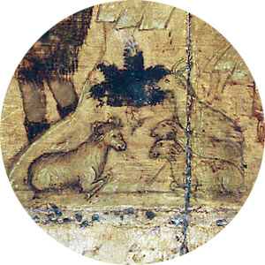 Les moutons sont le symbole de l’innocence et surtout de la rédemption. « Voici l’agneau de Dieu. » (Jn 1,29). Ils incarnent la douceur. L’agneau, comme le veau, est utilisé comme obole, sacrifié à Dieu. « L’agneau premier-né […] incarne le triomphe du renouveau, la victoire, toujours à refaire de la vie sur la mort. C’est cette même fonction archétypale qui fait de lui par excellence la victime propitiatoire, celui qu’il faut sacrifier pour assurer son propre salut [7]. » Ceci décrit bien tout le symbolisme qu’ils incarnent dans notre icône.