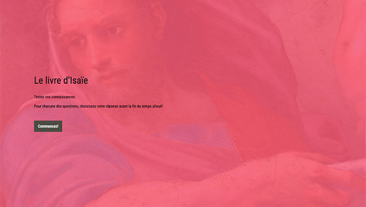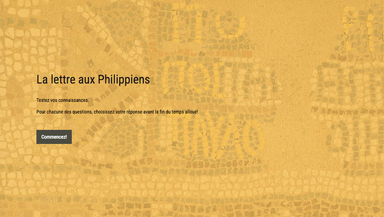 Sur cette page, nous vous proposons de tester vos connaissances sur la Bible avec une nouvelle série de quiz. Certaines réponses peuvent être trouvées sur le site, mais votre Bible et votre mémoire sont quand même vos meilleurs atouts. Chaque quiz comporte une dizaine de questions. Les quiz de la première série sont accessibles ici.