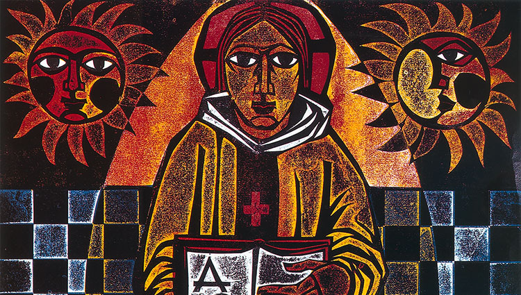 Les estampes de Carpentier, un art de synthèse… Art roman? Vitrail? Expressionnisme? Icônes byzantines? Un peu tout cela et bien davantage, ce qui ne laisse pas indifférent.